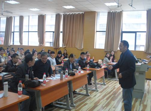 本次活动分为讲课和评分两个环节。在接下来的比赛中,陈群老师用严密的逻辑思维深入浅出地论证了 “荀子哲学的归结点——化性起伪”。黄晶老师则在“孔子的政治思想”一讲中诠释了德政的张力及其与霸政的优劣。王雅克老师的“金刚经导读”重点阐述了《金刚经》中的核心概念“空”,不觉中让师生品味到了宗教哲理的魅力所在。韦正富老师用丰富的实践经验讲解了“公共政策务实”。苏聪老师则从古典史学的终结和基督教史学的兴起这一视角来诠释了中世纪史学的变迁。在比赛过程中,公司5位青年教师各显神通,他们用深厚的学养和出众的技能给在场师生讲授了一堂丰富而精彩的综合课。