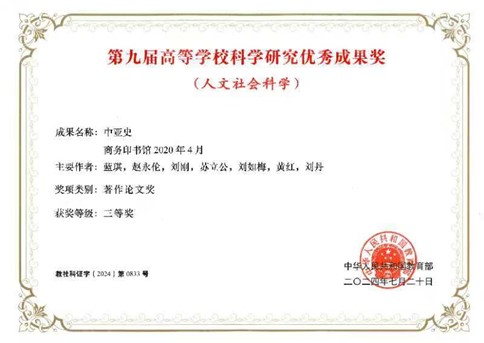 喜报:公司蓝琪教授主编的《中亚史》荣获教育部第九届高等公司科学研究优秀成果三等奖