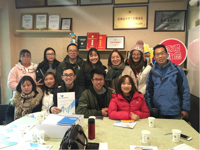 2017年12月15日上午,在社会工作系教师詹玉平、苏新帆的带领下,2015级社会工作专业十余名员工前往贵阳市众益志愿者服务发展中心进行走访见习,实地了解了社会组织在志愿者培育方面的具体工作。