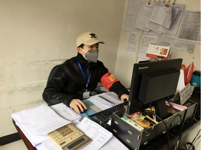 在抗疫工作中,协同村委会工作人员在主要路口设点排查,主要负责对经过车辆、人员进行登记。