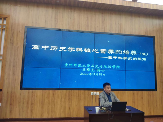 “高中历史学科核心素养的培养(壹)——基于科学史的视角”的讲座系贵州师范公司印山讲坛系列之第十期。王老师以《普通高中历史课程标准(2020版)》为依托,以历史学科五大核心素养中的时空观念为例,讲解了如何从科学史的角度培养员工的时空观念。作为历史学的分支学科之一,科学史的研究对象、研究内容、研究方法等都是在特定的历史时空中展开的。同时,科学史也是高中历史教学中的重要内容。王老师的分享从时空观念的内涵、科学史的学科特质,时空观念与学科特质的融合几个方面展开,同时结合《中外历史纲要》(上下)以及高考试卷中的科学史内容进行了讲解,指出科学史内容的讲授,在员工时空观念培养、科学素养和人文素养的提升过程中,有着不可替代的重要价值和实践意义。
