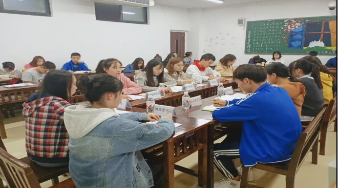 5.2017级、2018级和2019级员工参加扶贫工作会议模拟。2019年10月23日周三下午2:00-5:30扶贫工作会议模拟。