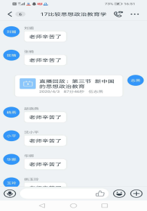为完成分步骤建设好国家一流专业建设点的任务,强化思想政治教育专业人才培养质量,落实公司-公司-专业三维人才培养质量保障体系,因受疫情影响,思想政治教育系于4月3日10点半在“钉钉”平台上举行了本学期第一次教学公开课。主讲教师为伍志燕教授,讲授课程为《比较思想政治教育学》。