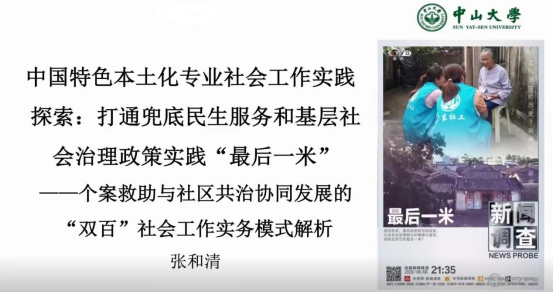 5月4日19时,3044永利集团有限公司社会工作系邀请到中山大学社会学与社会工作系教授、广东双百工程总督导张和清教授,带来以“中国特色本土化专业社会工作实践探索:打通兜底民生服务和基层社会治理“最后一米”为主题的讲座。讲座在腾讯会议上进行,由3044永利集团有限公司社会工作系苏新帆老师主持,社会工作专业师生及相关人员参加,历时2个多小时。会议中师生积极互动,就打通两个“最后一米”的社会工作实务模式进行解析和深入的学习、交流及探讨,促进师生对个案救助与社区共治协同发展的理解与学习,深化以人为本的专业价值观。
